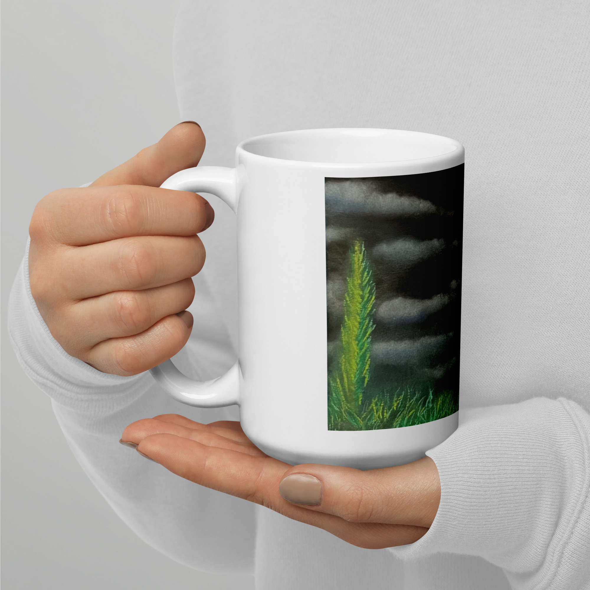• 15 oz mug dimensions: 4.7″ (11.9 cm) in height, 3.3″ (8.5 cm) in diameter