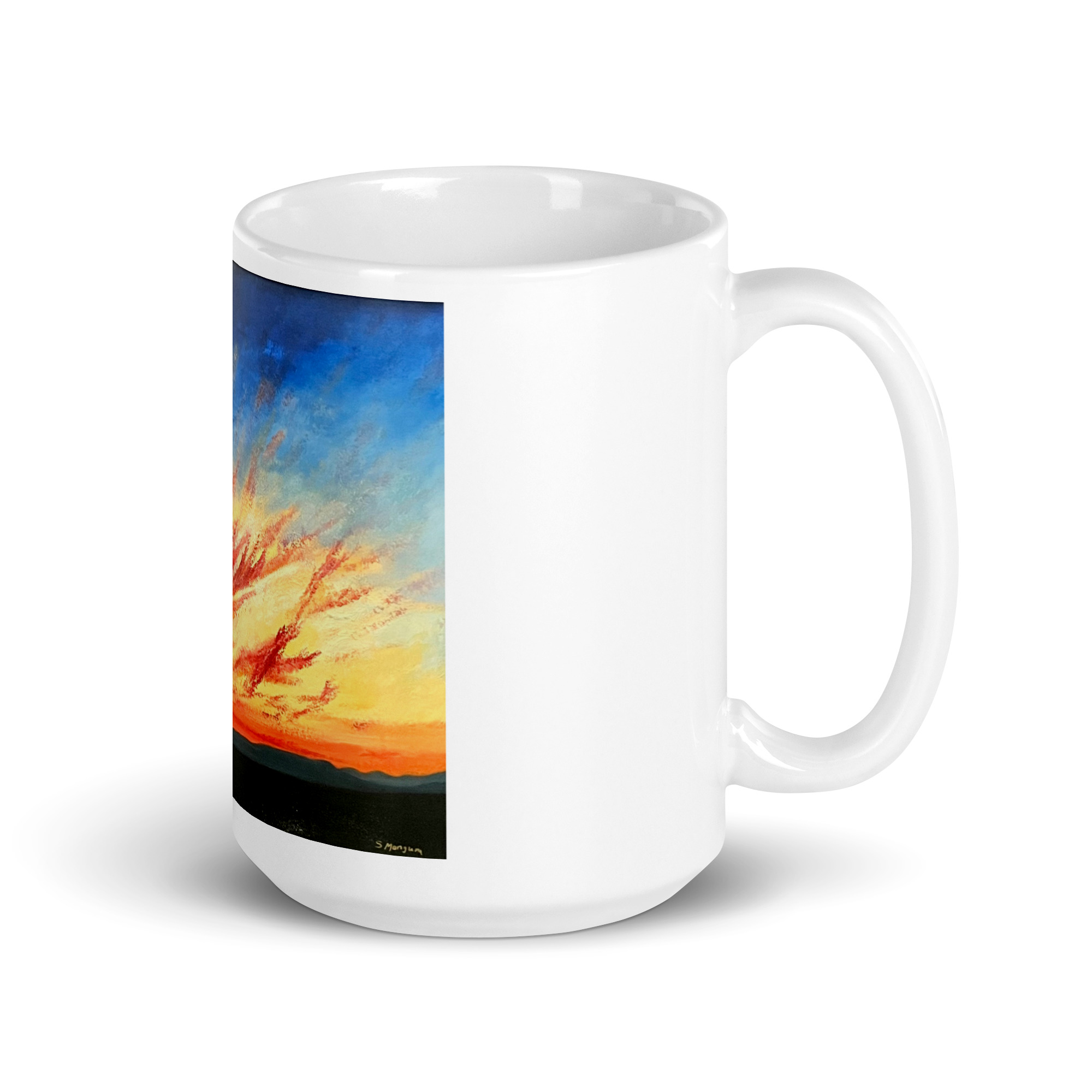 • 15 oz mug dimensions: 4.7″ (11.9 cm) in height, 3.3″ (8.5 cm) in diameter